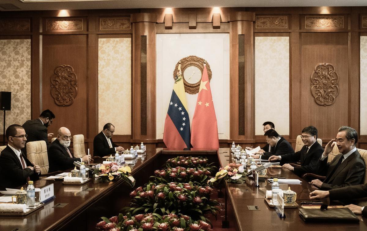 Chinese Foreign Minister Wang Yi (R) speaks during a meeting with Venezuelan Foreign Minister Jorge Arreaza (L) at the Diaoyutai State Guest House in Beijing on Jan. 16, 2020. Ng Han Guan-Pool/Getty Images